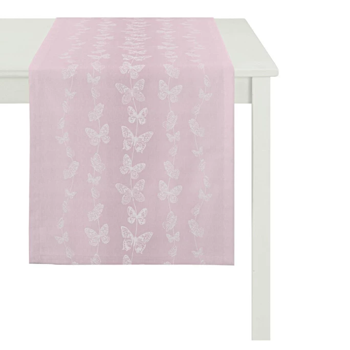 Lassen Sie Ihre Wohn- und Essräume durch den Tischläufer 2109 aus der SPRINGTIME Kollektion von APELT erstrahlen! Das Schmetterlingsdessin besticht durch seine harmonische Farbgebung und macht den Tischaufleger zu einer ausdrucksvoll klaren Dekoration. Die hochwertige Jacquard-Qualität aus 100% Polyester ist besonders pflegeleicht und strapazierfähig. Das Unternehmen APELT pflegt seit vielen Jahren die Tradition der Webkunst und entwickelt ganzheitliche Konzepte für die textile Gestaltung von Räumen. Eine exzellente Verarbeitung und das kreative, sowie technische Know-How spiegelt sich in den Kollektionen wieder. Die Stoffe von APELT werden in Deutschland entwickelt und produziert. Überzeugen Sie sich von der SPRINGTIME Kollektion – Sie werden Ihre Freude haben.