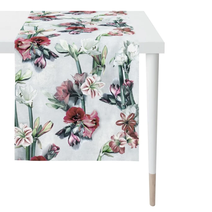 Internationale Trends und zeitgemäßes Design bestimmen die farbenprächtigen Kollektionen von Apelt. Sie umfassen Jacquard- und Transparentstoffe fürs Fenster, wunderschöne Tischwäsche, Sets, Servietten, Kissen in wunderschönen Designs und Farben. Mit Apelt können Sie sich modern und stilvoll einrichten. Der florale Tischläufer 2713 von Apelt sorgt für einen dekorativen Eyecatcher auf jedem Tisch! Das ausdrucksstarke Design überzeugt durch die romantischen Blüten-Motive. Hierbei sorgen die aufeinander abgestimmten intensiven Farben für ein harmonisches Zusammenspiel. Die feine Tischwäsche besteht aus 100% hochwertiger Baumwolle und ist pflegeleicht. Mit dem eleganten Tischläufer 2713 von Apelt sorgen Sie für ein geschmackvolles Ambiente. Wir bieten Ihnen in unserem AMBIENDO Shop aus dieser Serie weitere Tischwäsche-Artikel in unterschiedlichen Farbvarianten und Größen an. Lassen Sie sich von diesem exquisiten Wohn-Accessoire begeistern!