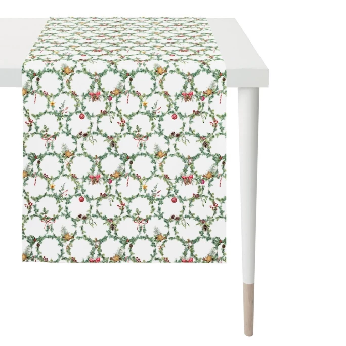 Internationale Trends und zeitgemäßes Design bestimmen die farbenprächtigen Kollektionen von Apelt. Sie umfassen Jacquard- und Transparentstoffe fürs Fenster, wunderschöne Tischwäsche, Sets, Servietten, Kissen in wunderschönen Designs und Farben. Mit Apelt können Sie sich modern und stilvoll einrichten. Der elegante Tischläufer 3606 von Apelt sorgt für einen dekorativen Eyecatcher auf jedem Tisch! Das stimmungsvolle Design überzeugt durch die festliche Christmas-Allover-Musterung mit Tannenzweigen und buntem Weihnachtsschmuck. Die feine Tischwäsche besteht aus 100% Baumwolle und ist pflegeleicht. Mit dem ausdrucksstarken Tischläufer 3606 von Apelt sorgen Sie für ein besinnliches Ambiente. Wir bieten Ihnen in unserem AMBIENDO Shop aus dieser Serie weitere Tischwäsche-Artikel in unterschiedlichen Farbvarianten und Größen an. Genießen Sie die schönste Zeit im Jahr mit diesem exquisiten Wohnaccessoire!