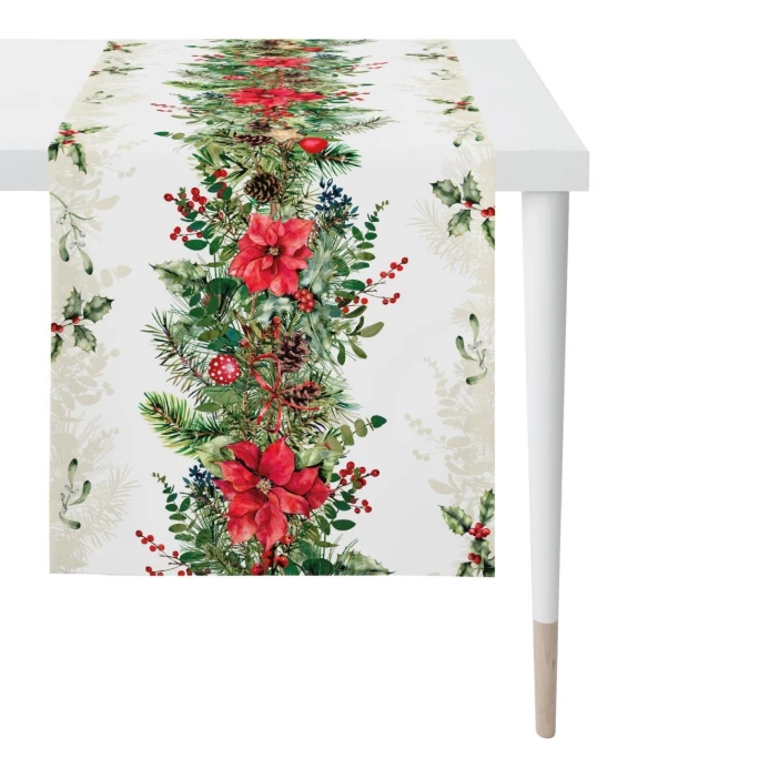Internationale Trends und zeitgemäßes Design bestimmen die farbenprächtigen Kollektionen von Apelt. Sie umfassen Jacquard- und Transparentstoffe fürs Fenster, wunderschöne Tischwäsche, Sets, Servietten, Kissen in wunderschönen Designs und Farben. Mit Apelt können Sie sich modern und stilvoll einrichten. Der edle Tischläufer 3607 von Apelt sorgt für einen dekorativen Eyecatcher auf jedem Tisch! Das stimmungsvolle Design überzeugt durch das festliche Weihnachtsgirlanden-Motiv in intensiver Farbgebung. Die feine Tischwäsche besteht aus 100% Baumwolle und ist pflegeleicht. Mit dem ausdrucksstarken Tischläufer 3607 von Apelt sorgen Sie für ein besinnliches Ambiente. Wir bieten Ihnen in unserem AMBIENDO Shop aus dieser Serie weitere Tischwäsche-Artikel in unterschiedlichen Farbvarianten und Größen an. Genießen Sie die schönste Zeit im Jahr mit diesem exquisiten Wohnaccessoire!