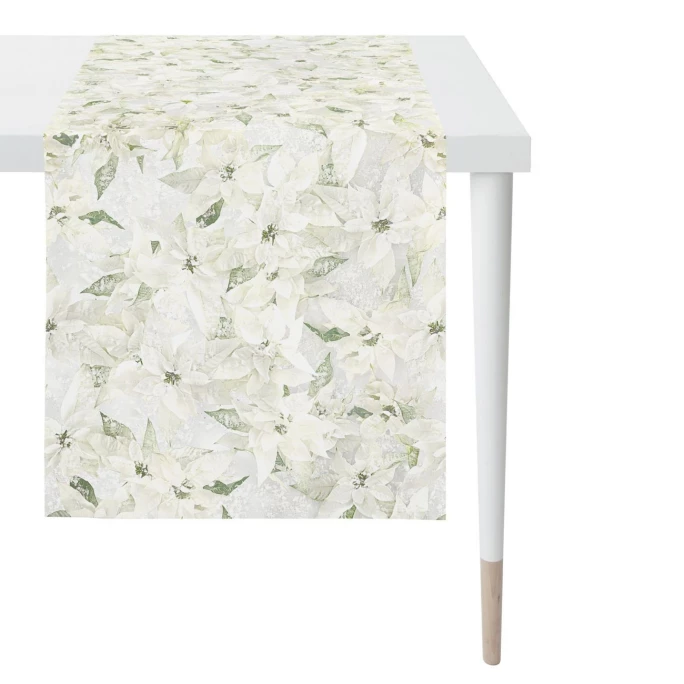 Internationale Trends und zeitgemäßes Design bestimmen die farbenprächtigen Kollektionen von Apelt. Sie umfassen Jacquard- und Transparentstoffe fürs Fenster, wunderschöne Tischwäsche, Sets, Servietten, Kissen in wunderschönen Designs und Farben. Mit Apelt können Sie sich modern und stilvoll einrichten. Der edle Tischläufer 3614 von Apelt sorgt für einen dekorativen Eyecatcher auf jedem Tisch! Das stimmungsvolle Design überzeugt durch die festliche Christmas-Allover-Musterung mit großblumigen Weihnachtssternen. Die feine Tischwäsche ist aus einem hochwertigen Materialmix bestehend aus Polyester und Baumwolle gefertigt. Mit dem ausdrucksstarken Tischläufer 3614 von Apelt sorgen Sie für ein besinnliches Ambiente. Wir bieten Ihnen in unserem AMBIENDO Shop aus dieser Serie weitere Tischwäsche-Artikel in unterschiedlichen Farbvarianten und Größen an. Genießen Sie die schönste Zeit im Jahr mit diesem exquisiten Wohnaccessoire!