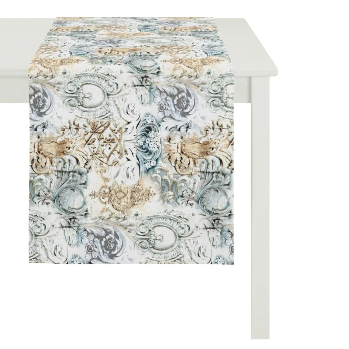 Mit dem Tischläufer 4693 von Apelt holen Sie sich einen echten Hingucker in Ihre Wohnräume! Denn das aufwendig verzierte Design zeigt ein Arabesken All-over Motiv, das für eine elegante Stimmung sorgt. Auch an der edlen Farbkombination werden Sie sich nicht satt sehen. Das Material aus feinster Baumwolle ist zudem besonders pflegeleicht und natürlich angenehm zart zur Haut. Das Unternehmen Apelt pflegt seit vielen Jahren die Tradition der Webkunst und entwickelt ganzheitliche Konzepte für die textile Gestaltung von Räumen. Eine exzellente Verarbeitung und das kreative, sowie technische Know-How spiegelt sich in den Kollektionen wieder. Die Stoffe von Apelt werden in Deutschland entwickelt und produziert.
