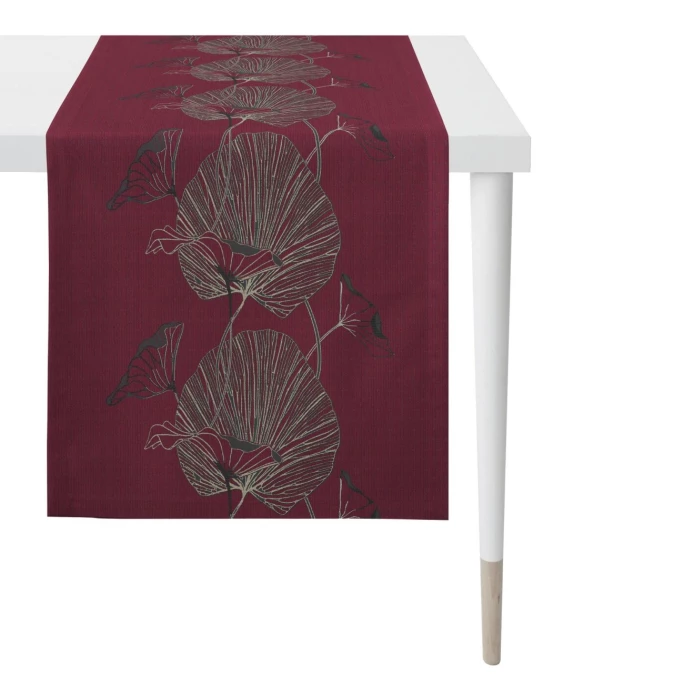 Wenn die Tage wieder kürzer werden, sorgen warme Farbtöne für ein schönes und gemütliches Zuhause. Bringen Sie Farbe auf Ihren Tisch mit dem traumhaft schönen Tischläufer HERBSTZEIT NORA aus dem Hause APELT. Der hübsche Gedeckläufer lässt Ihre Tafel im exklusiven Design erstrahlen. Das Seerosenblatt-Motiv wird, dank der edlen Jacquardqualität, perfekt in Szene gesetzt. Besonders erwähnenswert ist der Fleckschutz. Hergestellt wurde der Tischläufer NORA aus 90% Polyester, 5% Viskose und 5% Leinen. Die hochwertige Qualität ist besonders hautangenehm und sehr pflegeleicht und strapazierfähig. Lassen Sie sich von diesem geschmackvollen Wohn-Accessoire verzaubern! Das Unternehmen APELT pflegt seit vielen Jahren die Tradition der Webkunst und entwickelt ganzheitliche Konzepte für die textile Gestaltung von Räumen. Exzellente Verarbeitung und das kreative, sowie technische Know-How spiegelt sich in den wundervollen Kollektionen wieder. Apelt legt größten Wert auf die Einhaltung höchster Umwelt- und Qualitätsstandards. Die Produkte bis hin zu den Stoffen von APELT werden in Deutschland entwickelt und produziert. Lassen Sie sich inspirieren und machen Sie aus Ihrem Tisch ein Schmuckstück mit dem Tischläufer HERBSTZEIT NORA von APELT und kombinieren Sie nach Lust und Laune mit den Zierkissen aus dieser Serie – Sie werden begeistert sein!