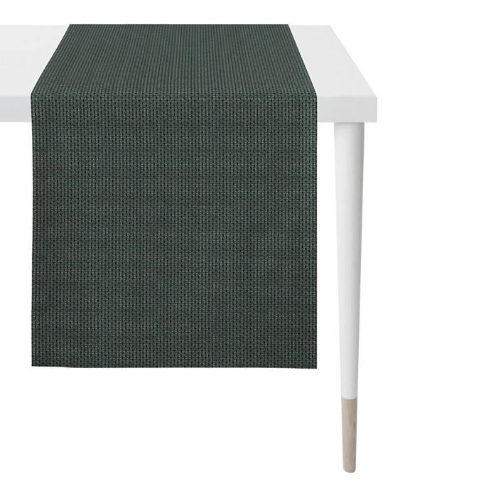 Zaubern Sie edlen Flair auf Ihren Tisch mit dem feinen Jacquard-Tischläufer 1104 LOFT STYLE aus dem Hause APELT. Der luxuriöse Gedeckläufer LOFT STYLE von Apelt lässt Ihre Wohnträume wahr werden mit exklusivem Design, welches durch die harmonisch aufeinander abgestimmte Farbgebung und die moderne, netzartige Musterung begeistert. Das hochwertige Jacquardgewebe der Tischdecke LOFT STYLE besteht aus 45% Polyester, 30% CS ( Trevira CS – permanent schwer entflammbar) und 25% Viskose, ist dank der Fleckschutzausrüstung sehr pflegeleicht und strapazierfähig – Flecken einfach mit einem feuchten Tuch abwischen! Mit dem edlen Läufer 1104 LOFT STYLE von Apelt sorgen Sie egal ob auf dem Esstisch, dem Tisch im Wintergarten oder dem großen Wohnzimmertisch für einen aufregenden Eyecatcher. Dank der großen aktuellen Farbauswahl lassen Sie sich die Tischdecken in nahezu jedes Wohnambiente harmonisch integrieren. Wir bieten Ihnen aus der Serie LOFT STYLE verschiedene Farb- und Mustervarianten dieser exklusiven Tischtücher und passend dazu auch Kissenhüllen und Ösen-Schals hier im AMBIENDO Shop an. Lassen Sie sich von diesen geschmackvollen Wohn-Accessoires verzaubern! Das Unternehmen APELT pflegt seit vielen Jahren die Tradition der Webkunst und entwickelt ganzheitliche Konzepte für die textile Gestaltung von Räumen. Exzellente Verarbeitung und das kreative, sowie technische Know-How spiegelt sich in den wundervollen Kollektionen wieder. Die Produkte bis hin zu den Stoffen von APELT werden in Deutschland entwickelt und produziert. Lassen Sie sich inspirieren und machen Sie aus Ihrem Tisch ein Schmuckstück mit dem Tischläufer 1104 LOFT STYLE von APELT und kombinieren Sie nach Lust und Laune mit den Zierkissen aus dieser Serie – Sie werden begeistert sein!