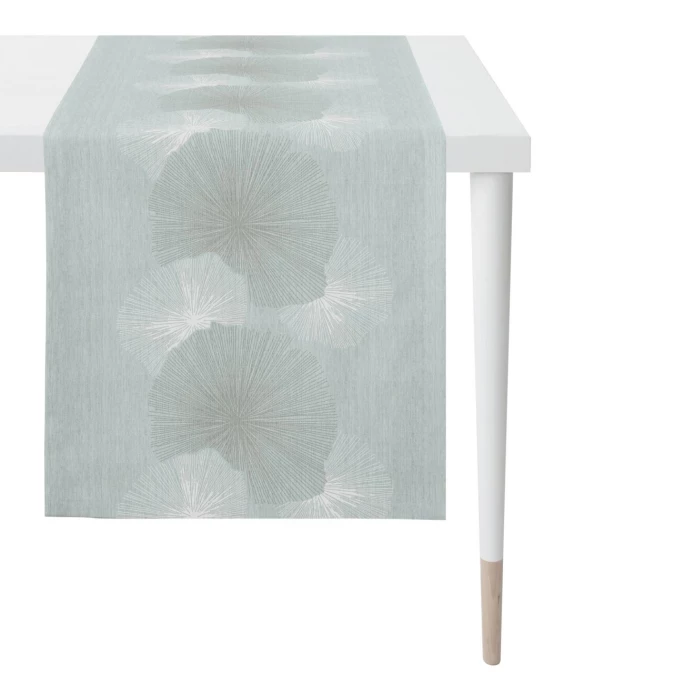 Sie mögen es modern und lieben grafische Muster? Dann ist der Loft Style Tischläufer 7200 aus dem Hause Apelt genau der Richtige für Sie! Aus recyceltem Polyester-Viskose-Mix gefertigt, begeistert Loft Style durch einen unifarbenen Fond mit stilisierten Blüten. Der gedeckte Farbton des Hintergrunds lässt das sich überlappende Blütendessin dabei erst so richtig zur Geltung kommen. Egal ob im Alltag oder auf der festlich geschmückten Tafel: Die Apelt Tischwäsche passt einfach zu jedem Anlass, lässt sich hervorragend mit schlicht weißem oder trendig buntem Porzellan kombinieren und kann problemlos im Feinwaschgang gereinigt werden. Und wenn Sie es gerne perfekt mögen: Hier im Shop bietet AMBIENDO Ihnen – passend zu dem Apelt Tischläufer – auch die Loft Style 7200 Kissenbezüge in unterschiedlichen Farbvariantern an. Lassen Sie sich von der hohen Qualität und dem tollen Look begeistern und geben Ihrem Zuhause einen trendigen Touch!