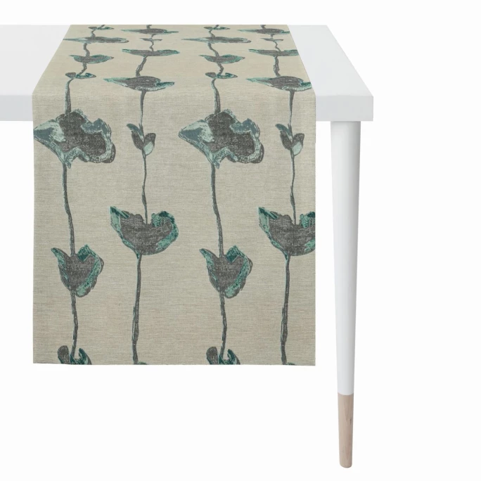 Internationale Trends und zeitgemäßes Design bestimmen die farbenprächtigen Kollektionen von Apelt. Sie umfassen Jacquard- und Transparentstoffe fürs Fenster, wunderschöne Tischwäsche, Sets, Servietten, Kissen in wunderschönen Designs und Farben. Mit Apelt können Sie sich modern und stilvoll einrichten. Der ausdrucksstarke Tischläufer Perla von Apelt aus der Loft Style Kollektion sorgt für einen dekorativen Eyecatcher auf jedem Tisch! Das florale Design überzeugt durch die verspielte Blütenmusterung in harmonisch aufeinander abgestimmten Farben. Die feine Jacquard-Tischwäsche ist aus einem hochwertigem Materialmix bestehend aus Polyester und Viskose gefertigt. Hierfür wurde von Apelt ein neues Garn aus recyceltem Plastik (NEWLIFE™) verwendet. Mit dem extravaganten Tischläufer Perla von Apelt sorgen Sie für ein romantisches Ambiente. Wir bieten Ihnen den Tischaufleger aus dieser Serie in unserem AMBIENDO Shop in unterschiedlichen Farbvarianten an. Lassen Sie sich von diesem exquisiten Wohn-Accessoire begeistern!