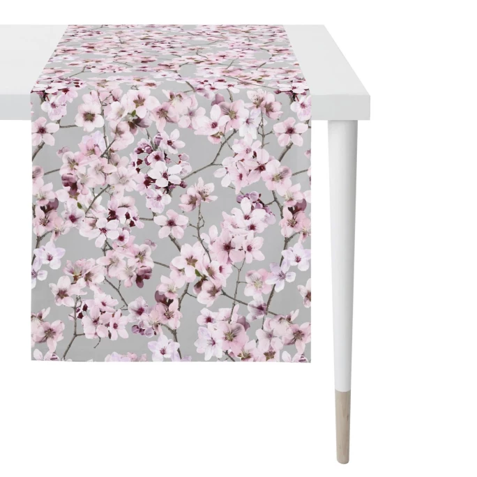 Für alle Liebhaber stilvoller Wohntextilien hat Apelt mit der aktuellen Springtime 6450 Kollektion ein absolutes Must-have für Ihr Zuhause geschaffen. Der elegante Tischläufer ist aus pflegeleichtem Polyester-Baumwoll-Mix gefertigt und begeistert durch einen wunderschönen Kirschblüten-Print. Zwischen den großen Blüten sind kleine, zarte Kirschblüten zu entdecken, die das optische Gesamtbild perfekt abrunden. Mit viel Liebe zum Detail lässt der hochwertige Digitalprint die Farben und Feinheiten der einzelnen Blüten und Zweige erst so richtig zur Geltung kommen. Egal ob im Alltag oder zur festlichen Dekoration: Der Apelt Tischläufer passt einfach zu jedem Anlass und kann problemlos in der Waschmaschine gereinigt werden. Das ästhetische Blütendessin des Bezugs ist auch auf den Springtime 6450 Kissenhüllen zu finden, die AMBIENDO Ihnen hier im Shop in verschiedenen Größenvarianten anbietet. Lassen Sie sich von der hohen Qualität und dem außergewöhnlichen Look begeistern und geben Ihrem Zuhause einen besonders exquisiten Touch!
