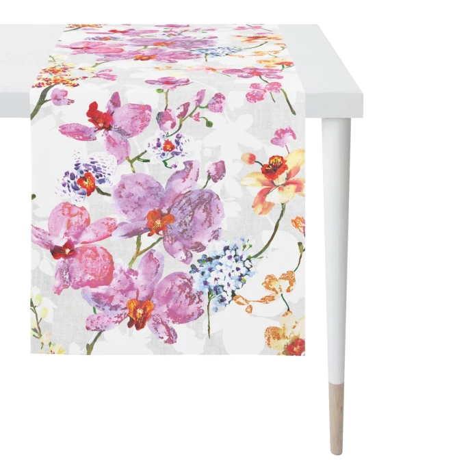 Egal ob im Alltag oder auf der festlich geschmückten Tafel: Der Apelt Summer Garden 7184 Tischläufer passt einfach zu jedem Anlass! Große Orchideen in aquarellierter Optik machen die pflegeleichte Tischwäsche zu einem absoluten Hingucker. Aus reiner Baumwolle gefertigt, kann Summer Garden 7184 problemlos im Feinwaschgang in der Maschine gereinigt und bei mittlerer Temperatur gebügelt werden. Der hochwertige Digitalprint ist mit viel Liebe zum Detail gestaltet und bringt die kräftigen Farben auf dem hell schattierten Fond so richtig zur Geltung. In verschiedenen Größenvarianten und als Kissenbezug erhältlich, setzt die Apelt Tischwäsche ausgefallene Akzente in Ihrem Zuhause. Lassen Sie sich von dem wunderschönen Dessin des Summer Garden 7184 Tischläufers begeistern und bringen farbenfrohes Flair in Ihr Zuhause!
