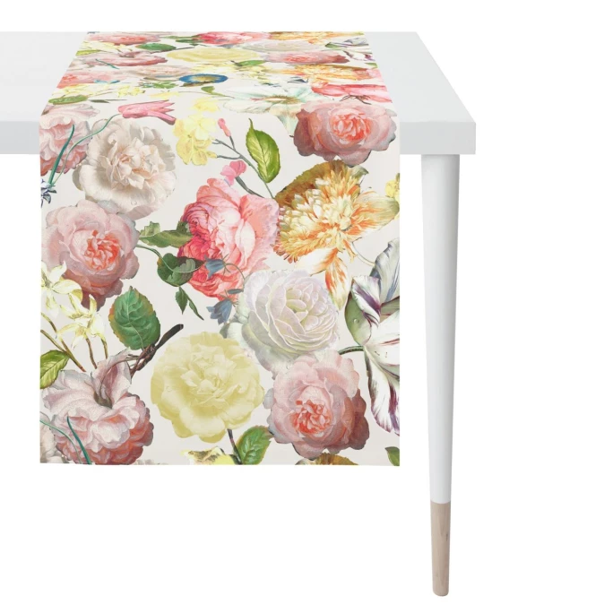 In elegant gedeckten Tönen oder farbenfroh, Sie haben die Wahl! Die Summer Garden Sina Tischwäsche-Kollektion ist ein absoluter Blickfang auf jedem Tisch – egal ob im Alltag oder auf der festliche gedeckten Tafel. Der pflegeleichte Polyestermix ist maschinenwaschbar und begeistert durch ein romantisches Allover-Blütendessin mit Rosen und Trichterwinde. Der hochwertige Digitaldruck ist liebevoll gestaltet und bringt Farben und Feinheiten erst so richtig zur Geltung. Zarte Tautropfen auf den einzelnen Blüten und die dezente Leinwandmalerei-Optik geben dem Summer Garden Sina Tischläufer einen wunderschönen Nostalgie-Look. In verschiedenen Farb- und Größenvarianten erhältlich ist die stimmungsvolle Tischwäsche ein absolutes Must-have für jeden Romantikfan. Und wenn Sie sich jetzt in das edle Dessin verliebt haben: Hier im Shop bietet AMBIENDO Ihnen – passend zu dem Apelt Tischläufer – auch die bezaubernden Summer Garden Sina Deko- und Stuhlkissen an. Lassen Sie sich verzaubern und geben Ihrem Zuhause einen besonders stillvollen Touch!
