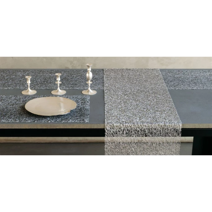 Veredeln Sie jeden gedeckten Tisch mit dem Chilewich Metallic Lace Rund Tischläufer. Der aus feinem Vinyl-Garn konzipierte Tischläufer ist in den USA hergestellt und weist eine komplexe, Outdoor-geeignete Webstruktur auf. Die Vinyl-Fäden des Metallic Lace Tischläufers sind zwar aus Textil, haben aber einen realistischen Metallic-Look. Dadurch setzen Sie mutige, extravagante Akzente auf Ihrem gedeckten Tisch.